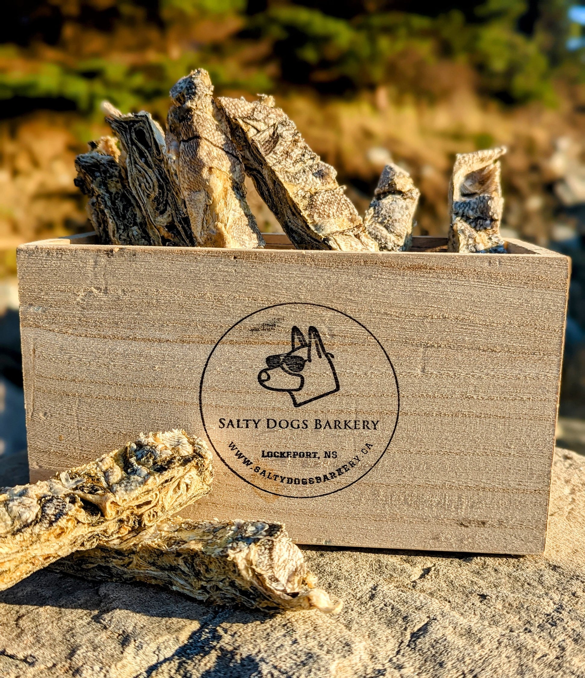 Salty Dogs Barkery, air-dried fish products are sustainably caught and processed in a CFIA certified facility. The slow air-dried process allows the fish to retain its protein, enzymes, nutritional properties and texture.