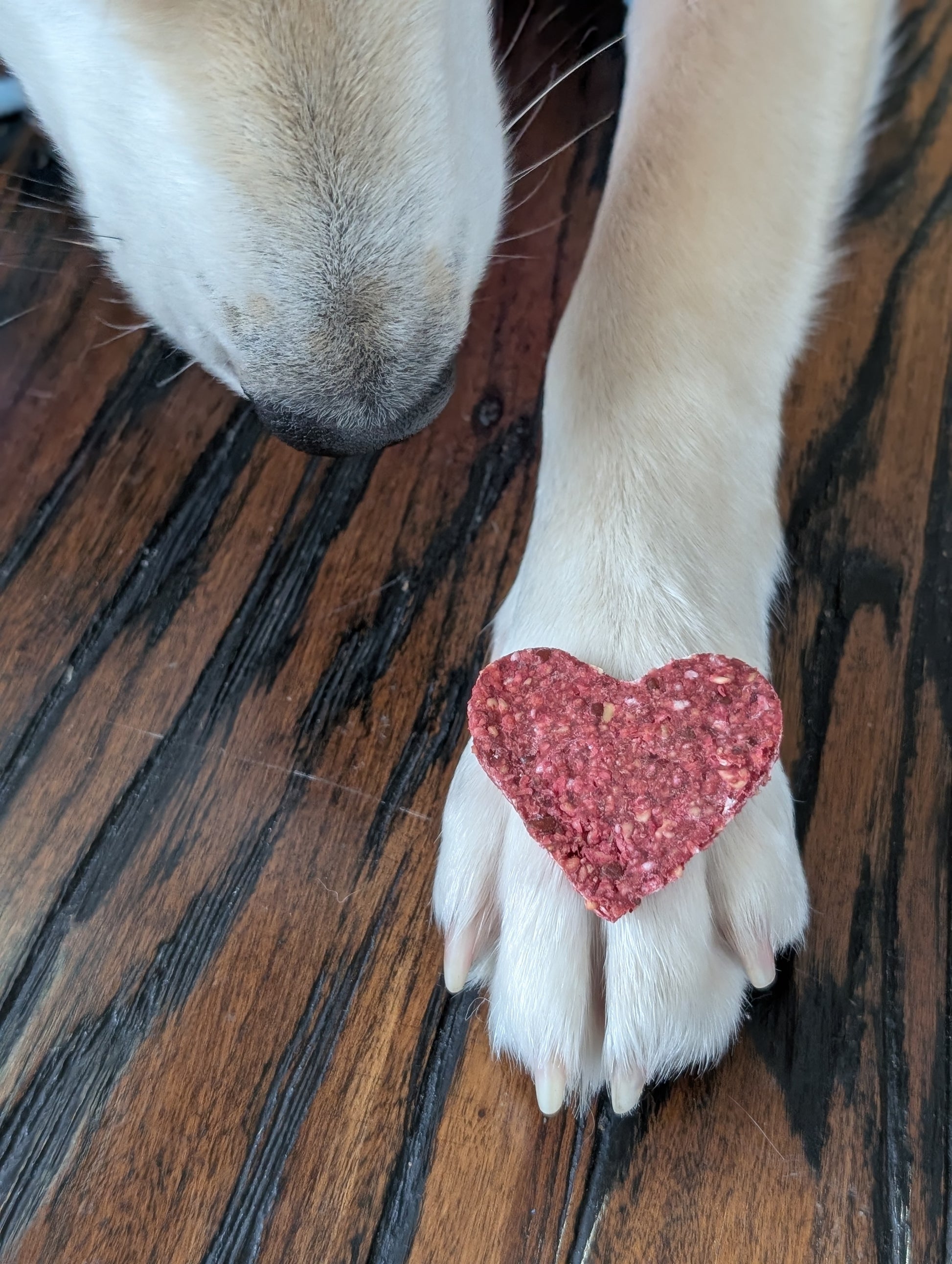 Your pup will love these handmade, easy to digest gluten free dog treats! Made with Nova Scotia's best organic oats from Bear River Farms, strawberries, beets, organic coconut oil, cinnamon, and flax seeds. Heart Beets are made with human grade ingredients that are packed with fibre, antioxidants and anti-inflammatory properties.