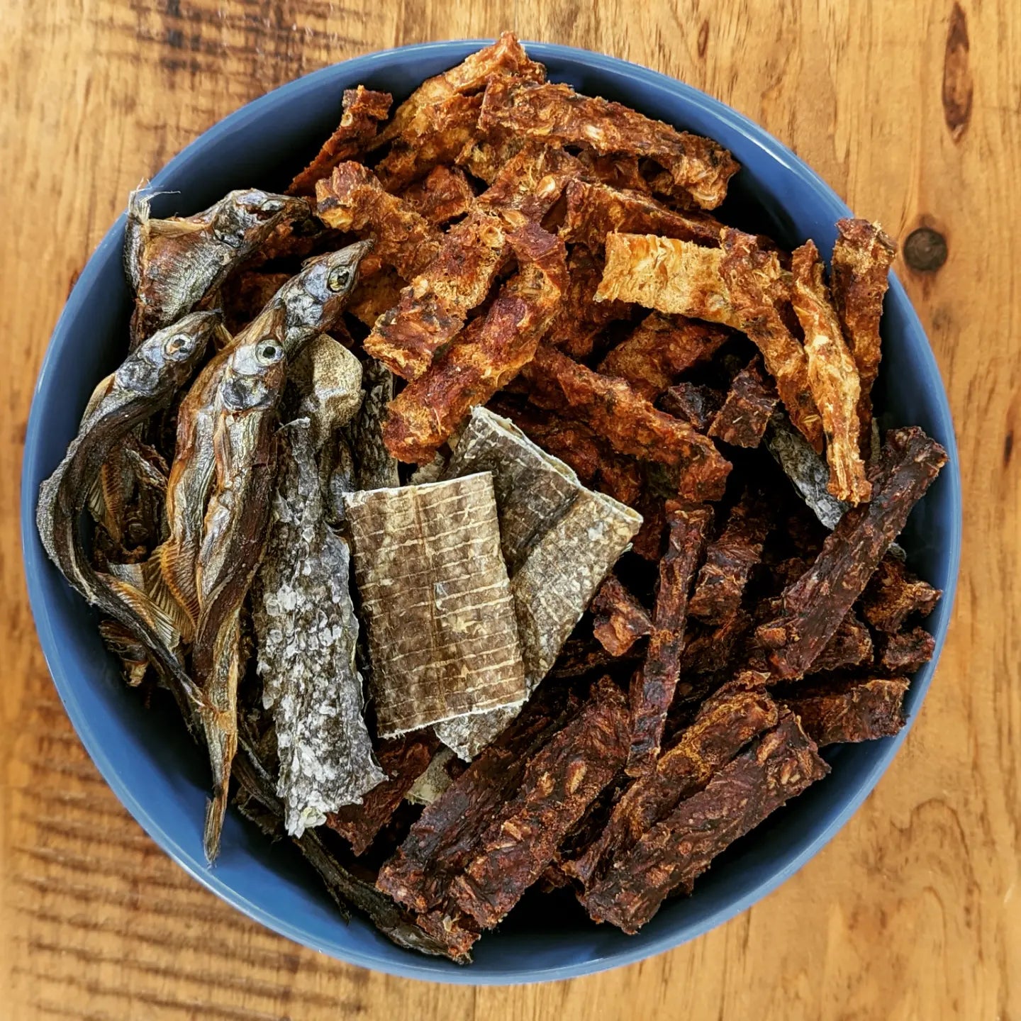 Inspired by the East Coast's famous Kitchen Party, this variety of healthy air-dried fish, includes a variety of cod, haddock, Wolffish, tuna and Capelin.