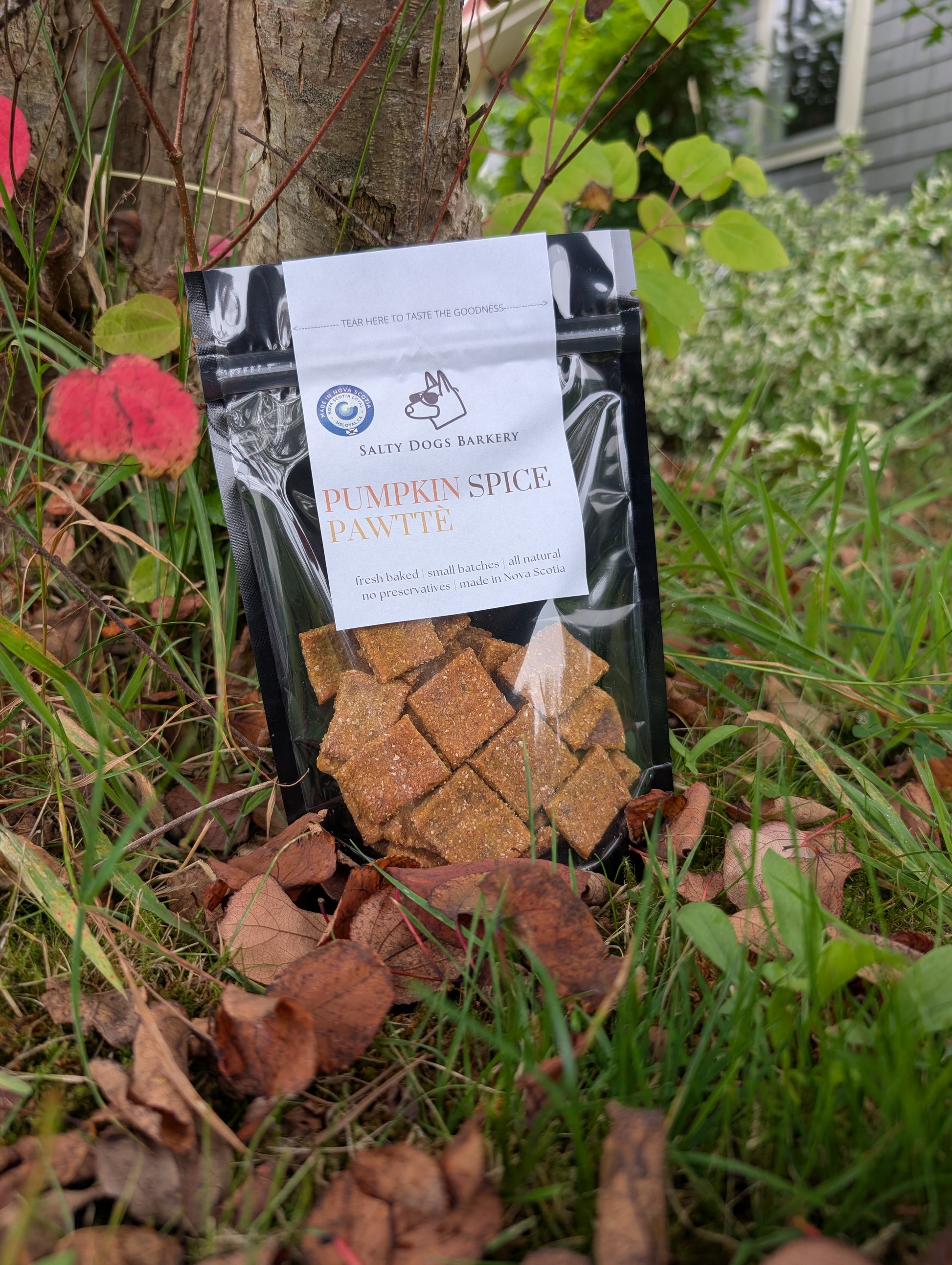 The Salty Dogs Barkery fall favourite, the Pumpkin Spice Pawttè is a limited edition fall cookie. This fresh baked cookie pairs with the best of fall, warm days at the beach, colourful nature walks, and fireside snuggles on cool nights.