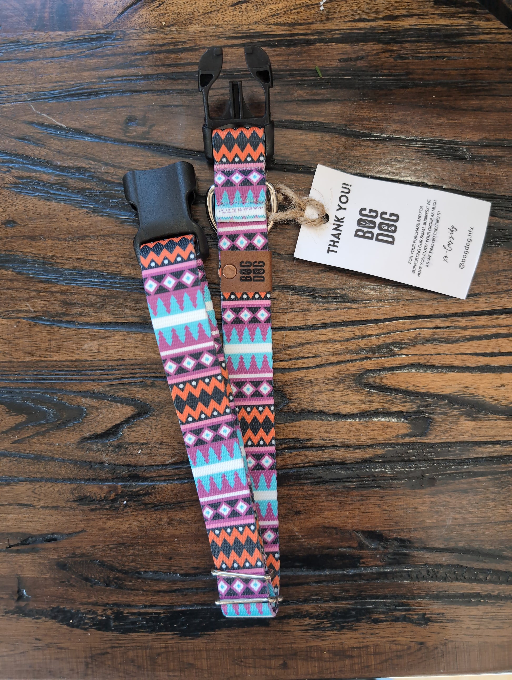 Stylish and durable, Bog Dog collars are hand made with 100% polyester, plastic side release buckle, and heavy duty welded D-ring, triglide and keeper.