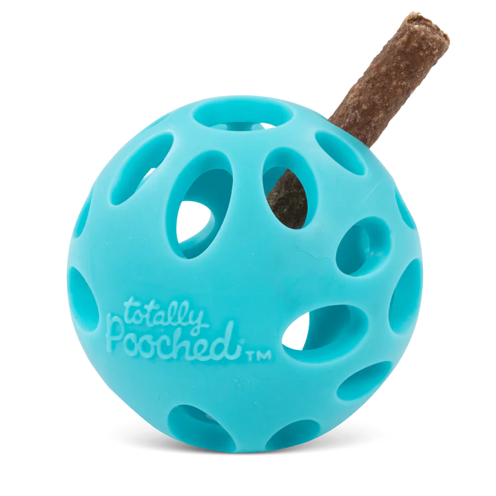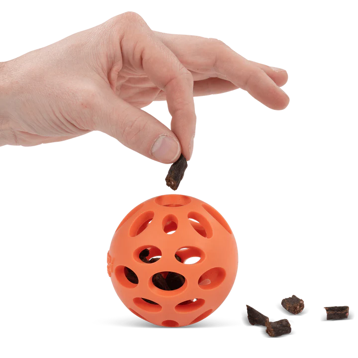 - This 3.1" ball can be stuffed with treats to help engage your mutt a little longer.