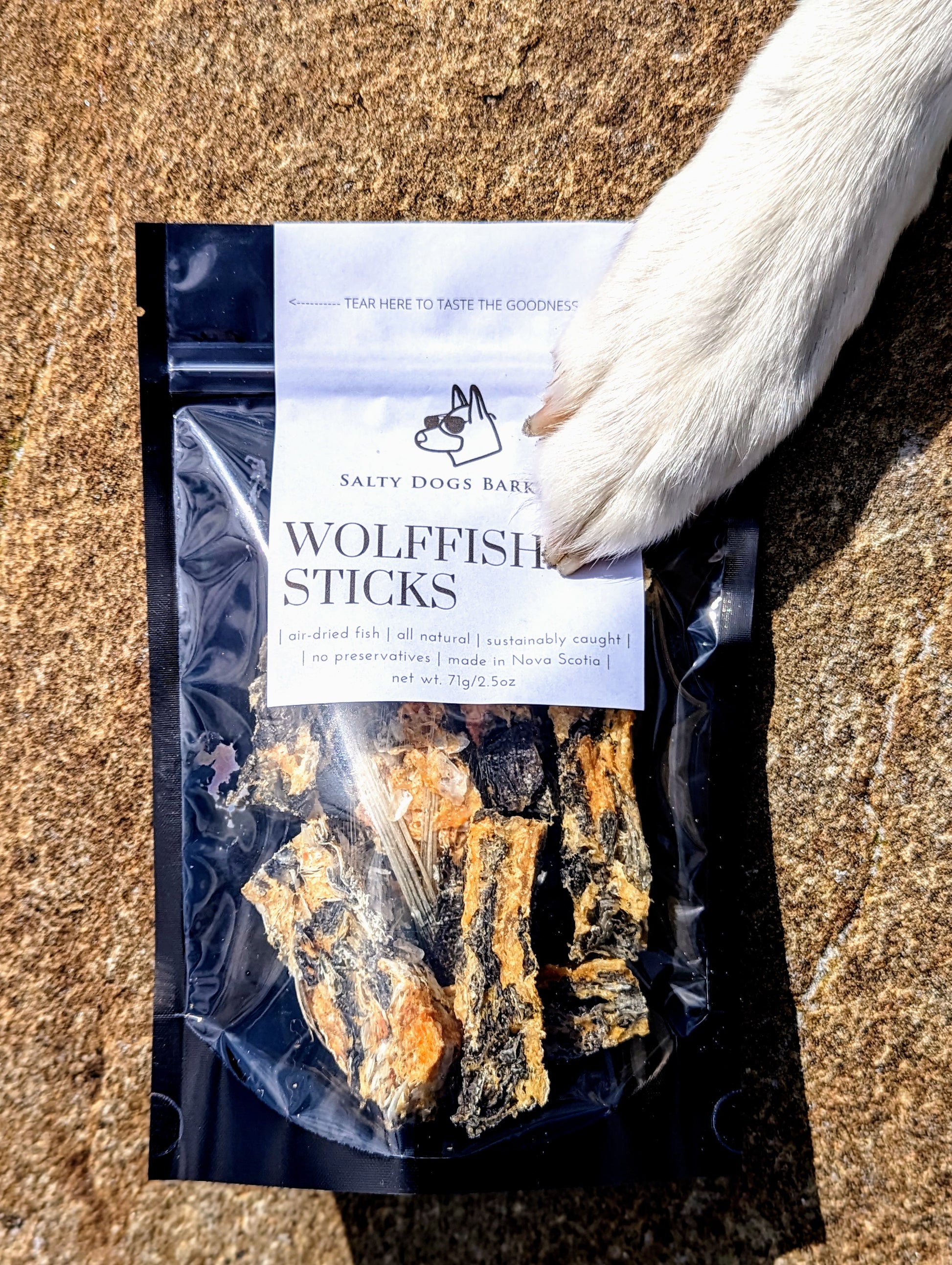 Salty Dogs Barkery, air-dried fish products are sustainably caught and processed in a CFIA certified facility. The slow air-dried process allows the fish to retain its protein, enzymes, nutritional properties and texture.